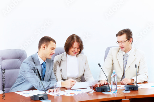 © Sergey Nivens, Obraz premium Three businesspeople at meeting