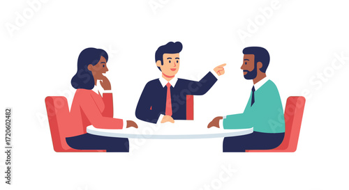© Hadi, Obraz premium Three businesspeople having a meeting around a table.