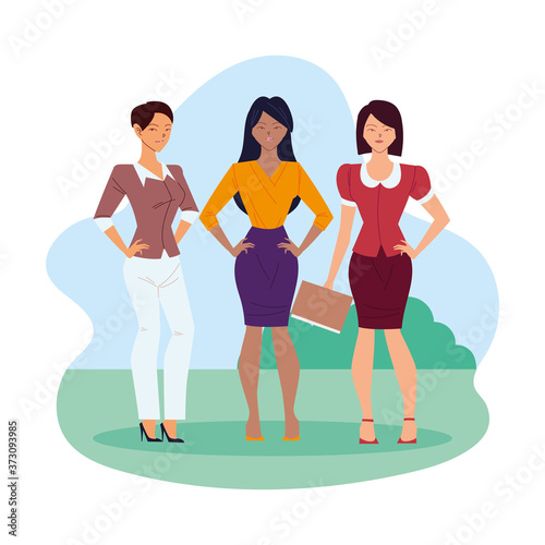 Obraz premium three businesswomen cartoons with file at parkvector design