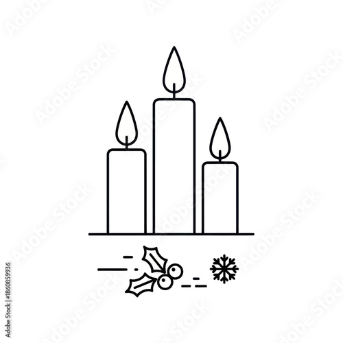© udin, Fototapeta premium Three Candles with Holly and Snowflake Illustration.