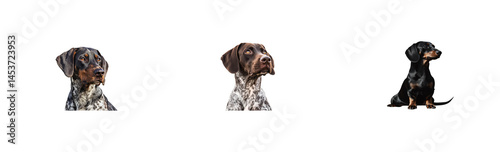 © Maestro, Obraz premium Three canine friends with alert expressions stand side by side. cut out transparent