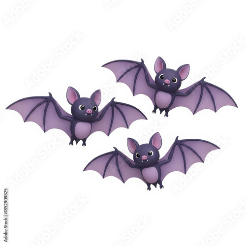 Fototapeta premium Three cartoon bats flying in a triangular formation against a white background