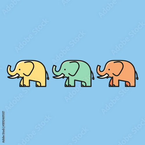 © Suryaaji, Obraz premium Three Cartoon Elephants in Different Colors.