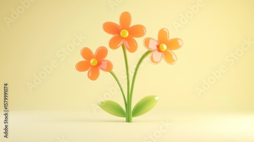 © AGIL, Naklejka premium Three cartoon flowers on a pale yellow background