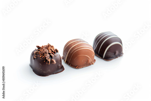 Fototapeta premium three chocolates are lined up on a white surface