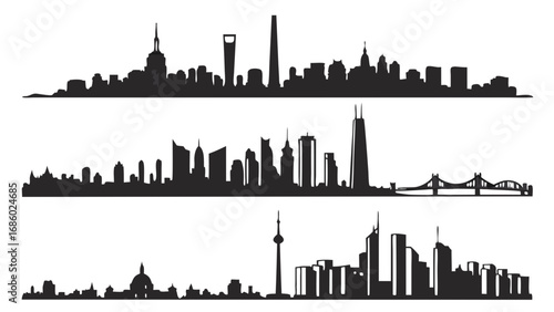 Naklejka premium Three City Skyline Panoramas Urban Modern and Architectural Vector Illustrations.