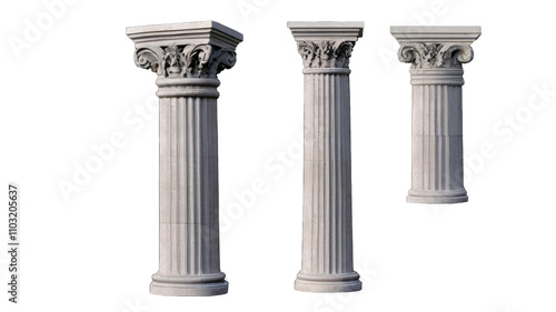 © Stockfish, Obraz premium Three classical columns, varying in height, isolated on transparent background