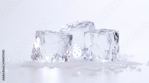 Obraz premium Three clear ice cubes on a light surface