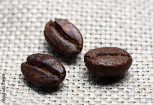 © Kokhanchikov, Obraz premium three coffee beans on canvas background