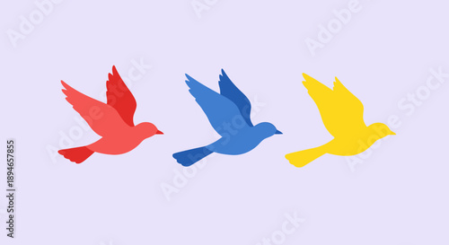 © Abhinaya Project, Fototapeta premium Three colorful birds flying together in a row.