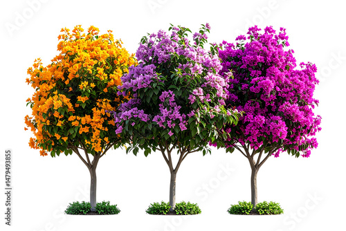 © Tofajjol, Fototapeta premium Three Colorful bougainvillea tree, transparent background