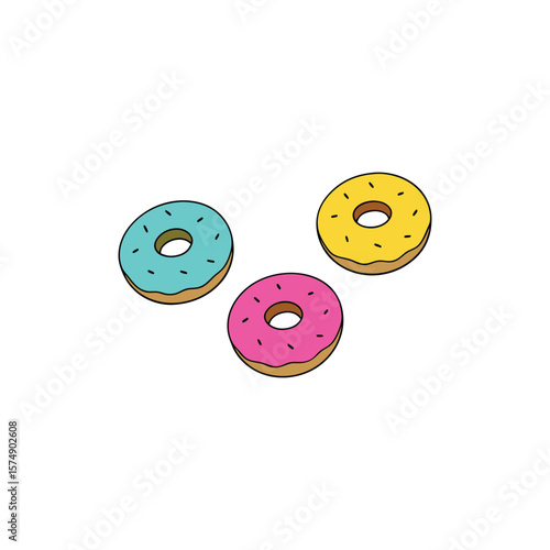 Fototapeta premium Three colorful donuts isolated on white background