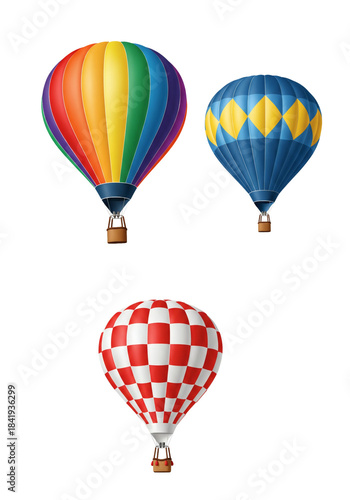 Fototapeta premium Three colorful hot air balloons isolated on transparent background on...