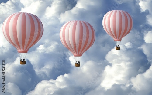© Nikolai, Fototapeta premium Three colorful hot air balloons soaring in a clear blue sky.