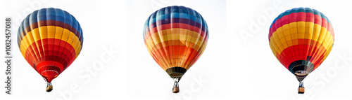 Fototapeta premium Three colorful hot air balloons with striped patterns against a white...