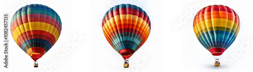 Naklejka premium Three colorful hot air balloons with white backgrounds.