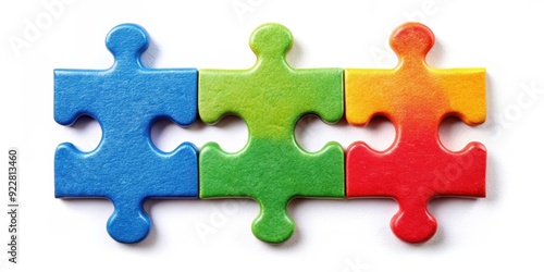 Obraz premium Three colorful interconnected puzzle pieces , teamwork, collaboration, problem solving, connection, solution, fit
