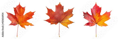 © Sariyono, Obraz premium Three colorful maple leaves on a light background.