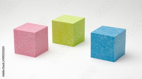 © Lesuna, Fototapeta premium Three colorful textured cubes on white background