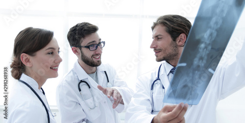 Fototapeta premium Three confident doctors examine an x-ray