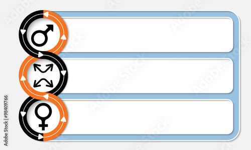 © garrifrotto, Obraz premium Three connected frames for your text and symbol of woman and man