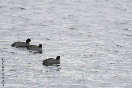 © 雅文 大石, Fototapeta premium Three coots swimming on sea