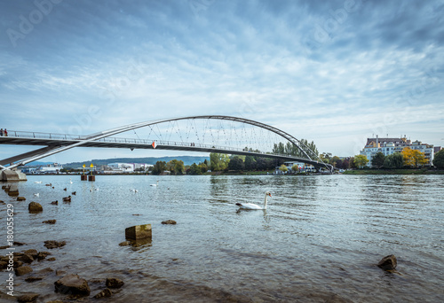 Naklejka premium Three Countries Bridge spanning the Rhine River and connecting Germany with...