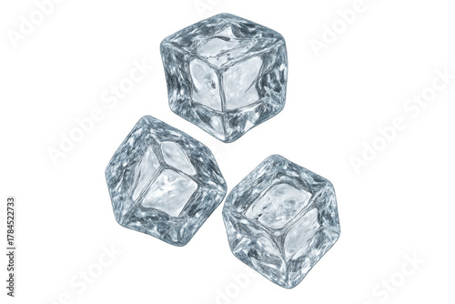 Obraz premium Three crystal clear ice cubes representing refreshment and coldness on a...