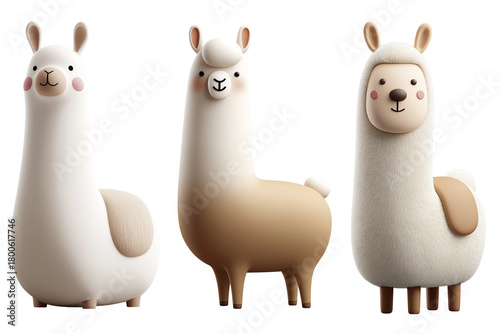 © Munying, Naklejka premium Three Cute 3d Pastel Llamas with Varied Textures on Transparent Background