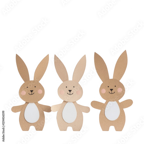 Fototapeta premium Three cute paper bunnies in playful poses, perfect for seasonal decorations...