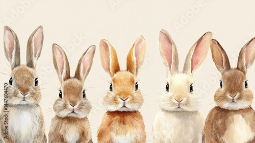 Obraz premium Three Cute Rabbits Sitting in a Row Against a Soft Green Background Creating...