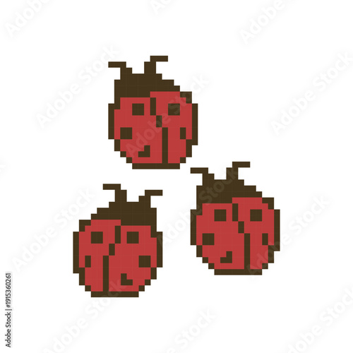 © Nirna, Obraz premium Three Cute Red Ladybugs Garden Insects
