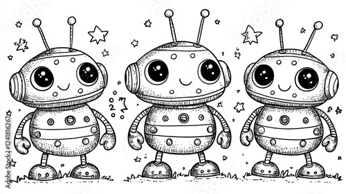 © M_H_L, Obraz premium Three Cute Robot Friends In Space