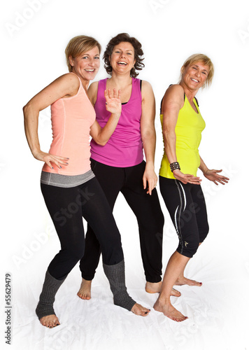 © jeancliclac, Fototapeta premium Three cute woman dancing on isolated white background