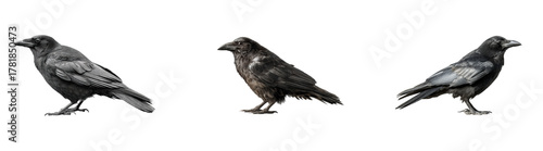 © Maestro, Naklejka premium Three dark ravens standing against a black background
