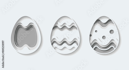Obraz premium Three decorative Easter eggs designed in a grayscale paper cut style with...