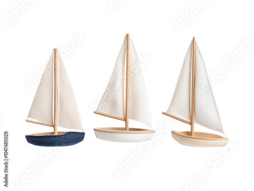 © Rona_65, Obraz premium Three decorative sailboats on a white isolated background, perfect for nautical-themed decor.
