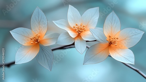 © lisa, Fototapeta premium Three Delicate Pastel Flowers on a Branch