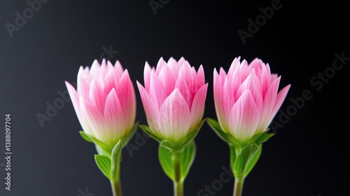 Naklejka premium Three delicate pink flowers in a row against a black background