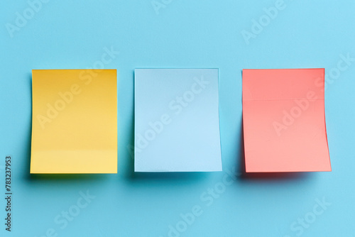 Fototapeta premium Three Different Colored Sticky Notes on a Blue Background