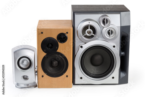 Obraz premium Three different home loudspeaker systems on a white background