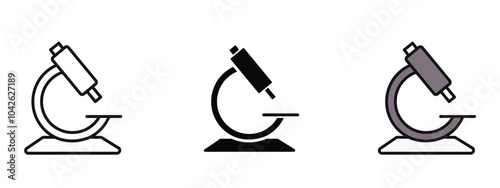 © Muhammad Tayyab, Fototapeta premium Three different microscope icons in outline, silhouette and editable color icon with an unexpanded vector inside, editable microscope icon