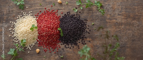 © The 2R Artificiality, Fototapeta premium Three different Quinoa varieties blend