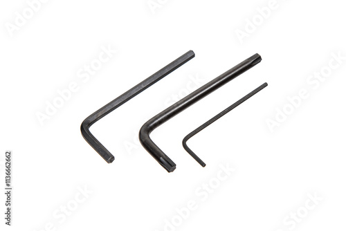 © solidmaks, Obraz premium Three different sizes of L-shaped hex keys, also known as Allen wrenches, are displayed against a white background