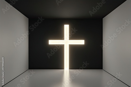 Naklejka premium Three Dimensional Abstract Space with Illuminated Cross Design in Minimalist Black Setting