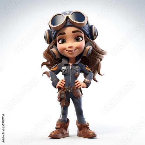 Obraz premium Three Dimensional Animated Pilot Figure on White Background