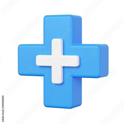 Fototapeta premium Three-dimensional blue and white cross symbol on transparent background
