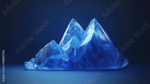 Obraz premium Three-dimensional crystalline ice formations against a deep blue background.