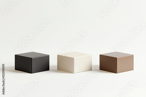 © Harry, Fototapeta premium Three Dimensional Cubes Minimalist Product Display Black Beige Brown Square Shapes Modern Geometric Design Background Studio Shot Clean Simple Elegant