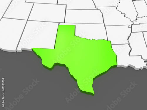 © Tatiana, Obraz premium Three-dimensional map of Texas. USA.